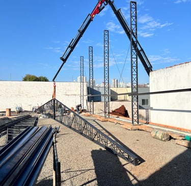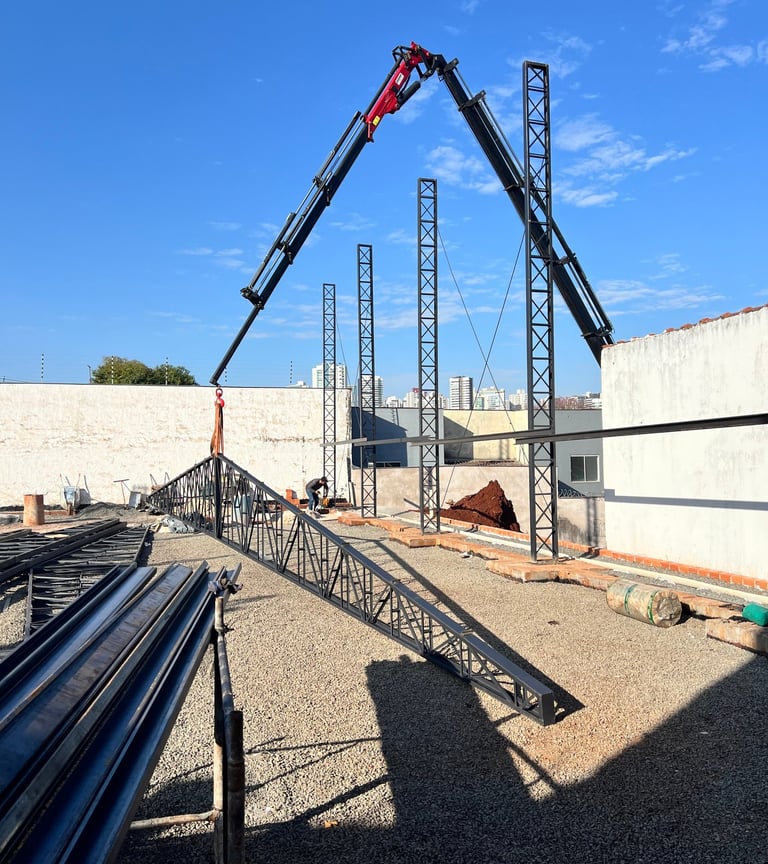 Coberturas e Telhados: Sistemas de cobertura eficientes e seguros, ideais para grandes vãos e com design adaptável a diferentes estilos arquitetônicos.